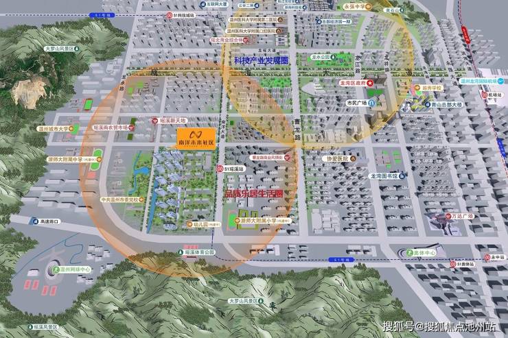 教育配套:直线 3km 范围内有 14 个幼儿园、8 个小学、9 个中学,如温州市龙湾区外国语小学、罗山公学、温州崇文中学等,教育资源丰富。