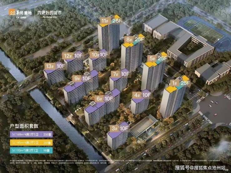 建筑类型:洋房8幢(10F),高层4幢(25-26F)