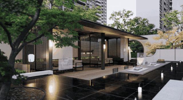 景观设计上以环形曲廊串联,社区的主入口还搭配平廊、亭榭、水墙等等元素,打造一轴一环景观轴线。项目规划三大主题场景,包括下沉式会所、约300平的中央戏水池以及“达尔文营地”等。