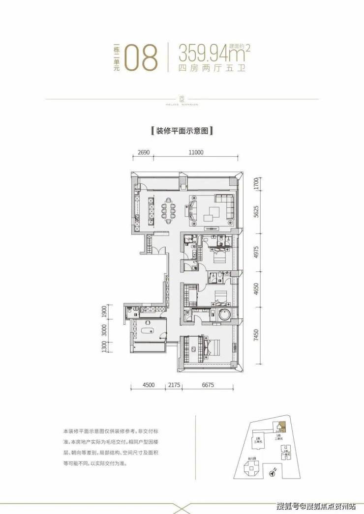【建面约337平4房全套房+1工人房3厅6卫】