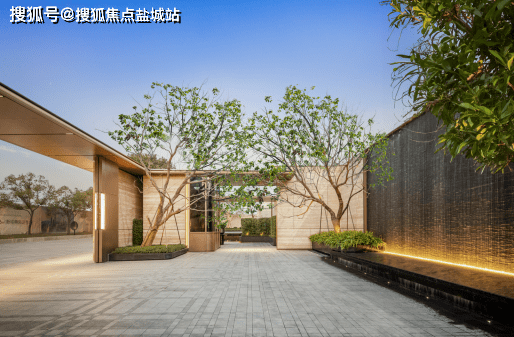社区中央区域,观宸润府利用与室内融合的外部空间,以海派肌理精奢铺装,缔造蓝钻之心中央水景。