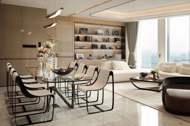 约230㎡“钻石”三房户型,复刻兰博基尼跑车楔形空间,约10米的客厅面宽,大幅全景落地窗,宛如一键打开超跑的全景天窗和无框车门。