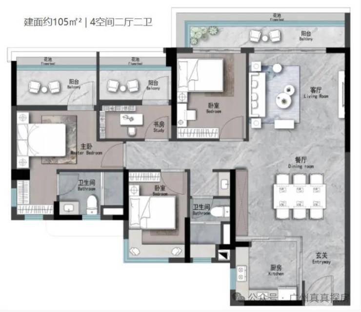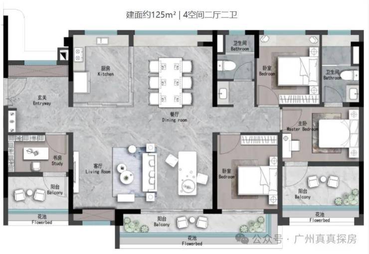 占地面积:78000 ㎡建筑面积:436000㎡容积率:3.62绿化率:30%规模:住宅+幼儿园+小学+中学+公交站+肉菜市场总户数:待定在售:105~182㎡洋房小区配套:世纪金源-东莞庄华工旁项目还采用“共生社区”模式,建立在新时代业主的需求之上,从社区居住功能升级,从人文关怀角度出发,更注重对业主的社区归属感,圈层社交的满足。约6万㎡野奢园林- 结合“楚庭”及羊城八景典故,打造“楚庭十景”主题园林,园林中的体验馆配置多种趣味设施,便于小业主们在乐园中展开冒险,营造沉浸式游玩约1421㎡东方艺术会所,涵盖约370 ㎡泳池及私宴厅等