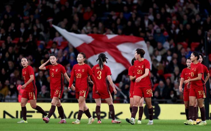 11月29日,中国女足球员在英格兰队球员进球后。新华社记者 李颖 摄 根据官方公布的数字,共有74611名观众在现场观战。主场作战的英格兰队球员在技术、速度和力量等方面全面占优。第12和第14分钟,她们先后在两个边路发动进攻,由米德连进两球。第16分钟,亨普再下一城。随后,斯坦威在第23、38和52分钟时连进三球,完成“帽子戏法”。第71分钟,中国队后卫与门将之间配合失误,被英格兰中场球员图恩抢断轻松破门。第78分钟,英格兰队依靠娴熟的进攻配合再次得手,拉索完成破门。
