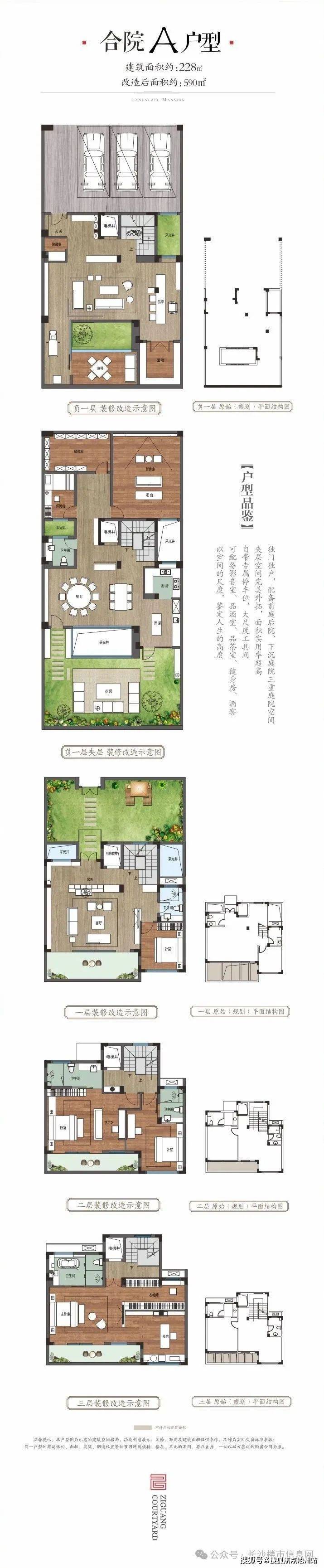 ①A户型买228㎡改造后实用590㎡带130㎡庭院