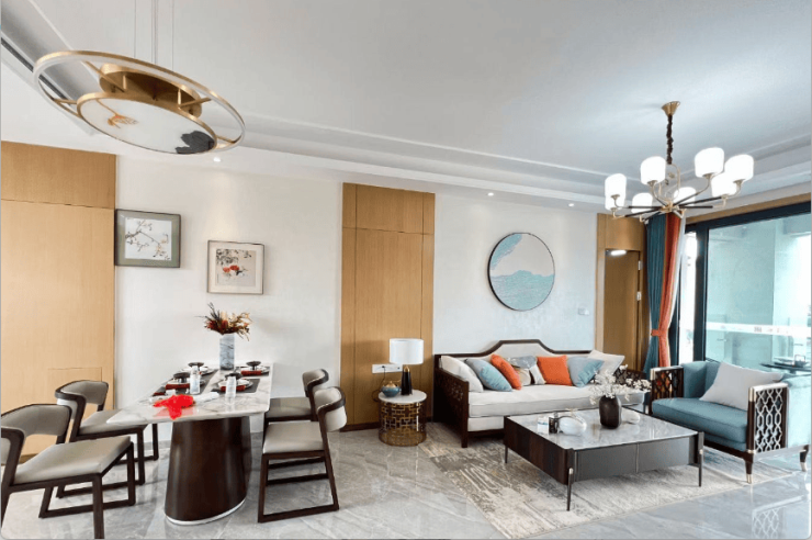6层纯板洋房,南北通透,石材干挂,新中式风格,3.2米层高,,温泉入户,现房实景交付。