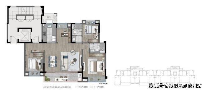 【上叠示意图 建面约145m2 4室2厅3卫】