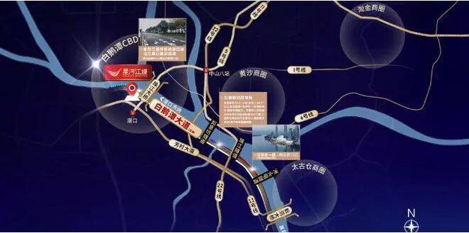 约 750m 即达 5 号线地铁滘口站,30 分钟可直达珠江新城 。白鹅潭未来超 10 条地铁线路穿过,覆盖大湾区 1 小时交通生活圈 。目前多条地铁线路已开通运营,还有多条重要线路在规划 / 建设中 。通过芳村大道、白鹅潭大道等道路,可快速抵达白鹅潭 CBD 核心区域及其他重要地点,交通十分便捷 。
