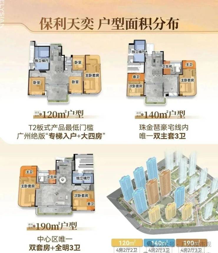 以往中心区T2板式产品,最小140㎡起,而身处琶洲CBD的保利天奕,门槛低至120㎡。