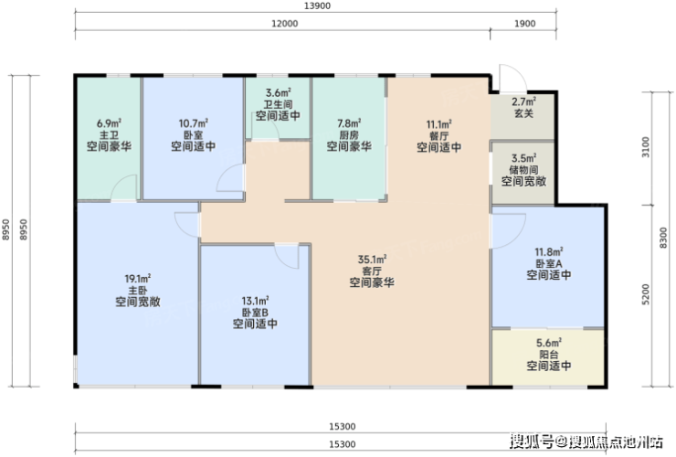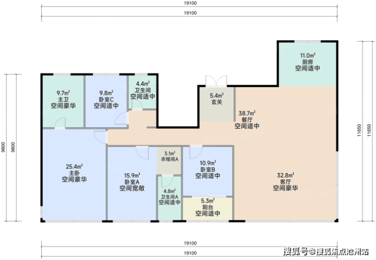 面积段较丰富,且清一色三房起步,均为两卫配置,小户型也能同时满足功能性与舒适性。