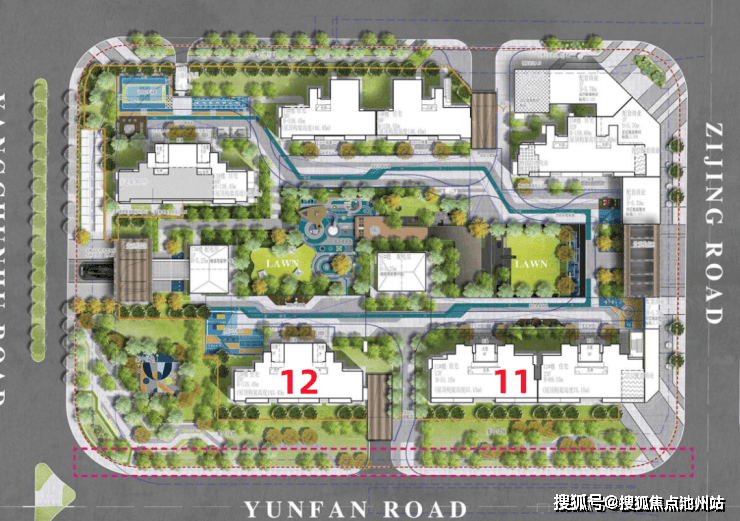 小区内部景观组团包括跌水归家、涟漪雕塑、仪式树阵、造型对景墙、双层景观廊架、奇趣童梦乐园、星光平原、多功能健身区、东湖街角公园等生活场景。