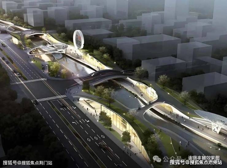 采取先进的“上盖模式”,整体社区向上抬高,整个社区犹如漂浮于大江之上的生机之岛。