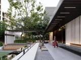主入口对景水院,采用“自然系”主题雕塑与浑然天成的景致湖滩,同时以天然石块、片岩结合下沉卡座,打造约300㎡曲水流觞逸境。以欣赏者视角为设计语言,锻造香槟金铝板,镶边轻奢金属线条,米灰色仿石漆、落地窗、大面…