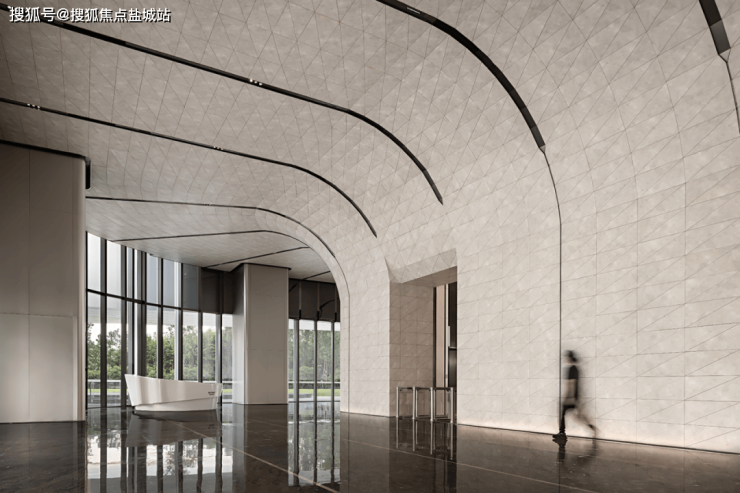 建筑造型简约内敛,表皮随着光线的折射而呈现出极具流动性的线型变化,呈现钱塘江潮汐的涌动与起落,形成丰富的立面韵律,仿佛是一组节律变幻的城市音符,以回应“钱江潮涌”的独特的潮汐现象。目前,项目已完成建筑外墙的多段典型视觉样板的确认。