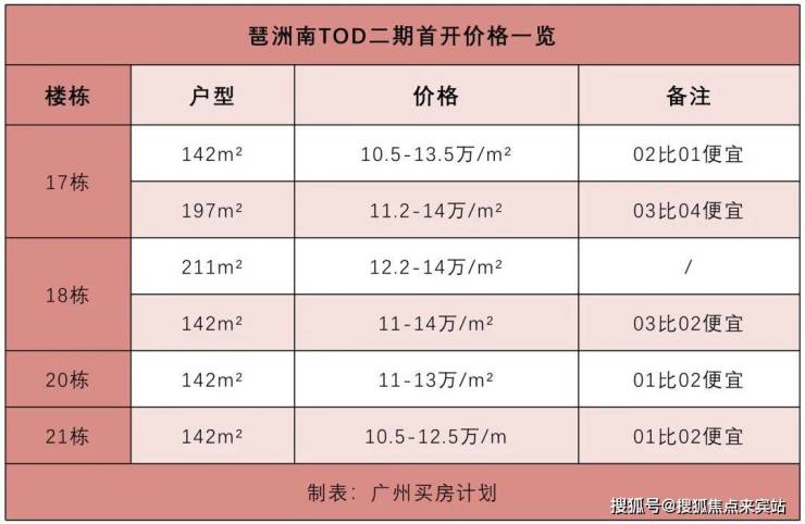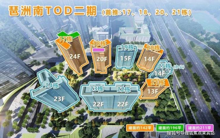 琶洲南TOD二期整体价格区间在10.5-14万/㎡,产品实用率比一期更高,所以性价比更高,其中首开的四栋有两栋142方是板楼设计,因为靠近华南快速高速路,价格相对便宜点,其余两栋则是塔楼设计。更多点击:琶洲南TOD二期140方货量告急