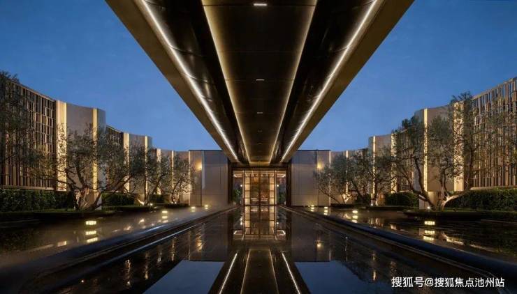 序院区,同频招商玺“树宅相守”理念,招商嵩雲序精心打造约24米水景长廊,约6.6米高的景观墙与定制灯具交相辉映,郑州特色纯手工定制铝板吊顶。水景长廊两侧,油橄榄树列阵而立,每侧4棵,共计8棵,营造出庄严而温馨的回家序列仪式空间。
