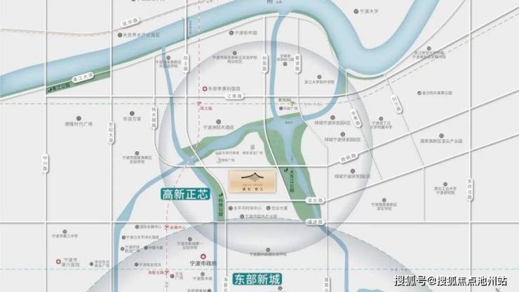 地处高新区核心地段—院士路东侧,扬帆路与创苑路之间,大东江公园旁。毗邻【东部新城】及【老江东】,距离宁波市市政府约2公里,距离高新区服务中心约1公里。周边城市界面新颖,水系公园环绕,企业楼宇鳞次栉比,是理想的城市都会。