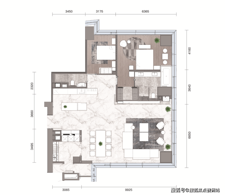 245㎡户型,从灰色系中汲取设计元素,用木与石灰调之间的互动,展现丰富的肌理效果。