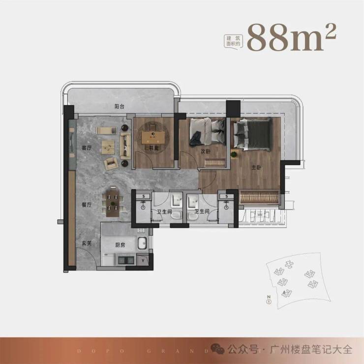 (88㎡户型效果图)