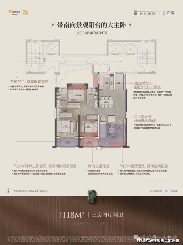 户型采用长沙新规设计,面积段为118-128-133-150-180㎡。
