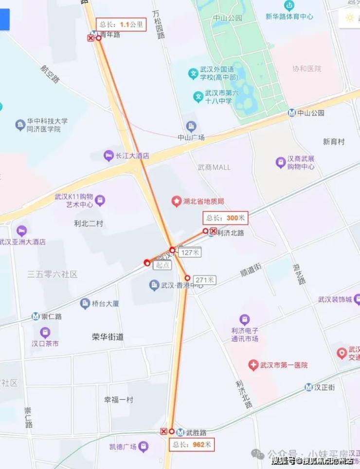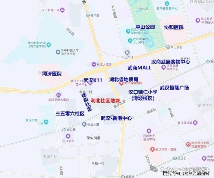 项目南面为京汉大道、武汉香港中心,北面靠着新世界中心、武汉K11,东面挨着利济北路、湖北省地质局,西面是祥和社区、三五零六社区。