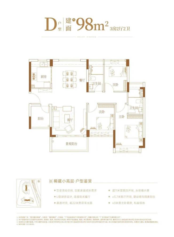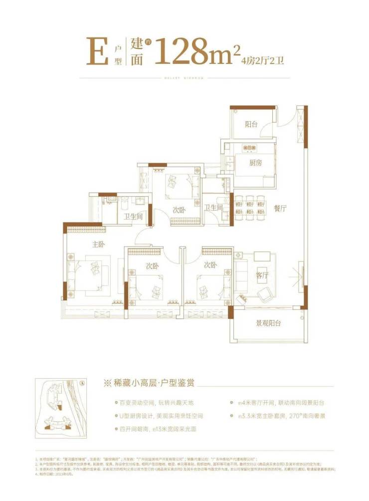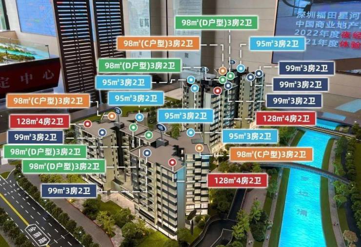 户型方面,选择会比较多,有95㎡三房、98㎡三房(有C、D两个户型)、99㎡三房、128㎡四房,一共五个,均为+1房设计,据说实用率达到约95%。