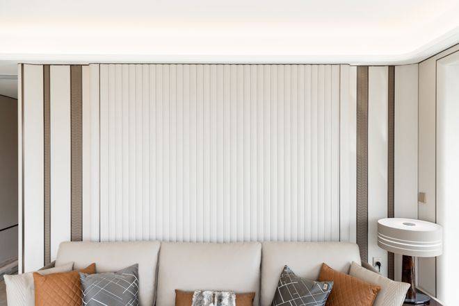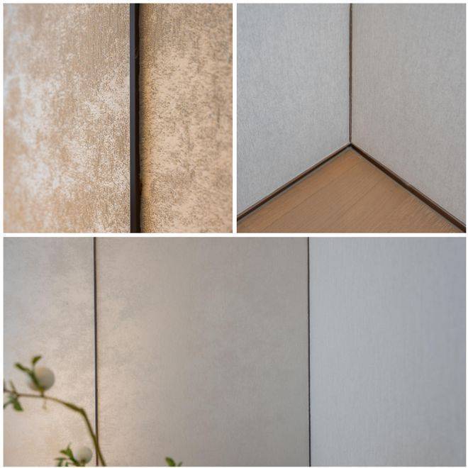 室内墙面及转角处内嵌金属线条。这些线条不仅是装饰,更在视觉上起到了延伸与过渡效果,让空间更具层次。