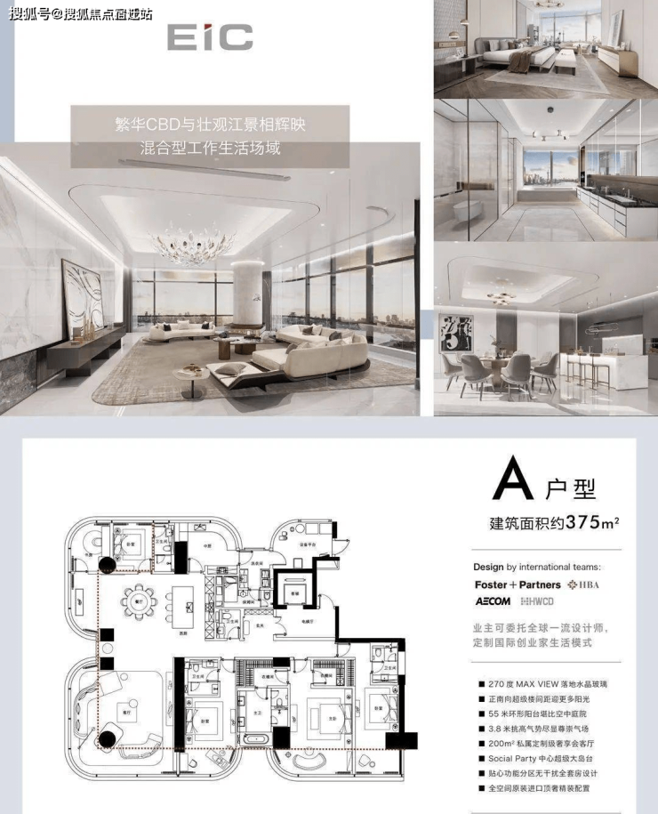 【配 套】自带地上地下商业中心、中央空调、独立新风系统 、多联机系统、冷梁行政公馆效果图空中花园户型鉴赏EIC精筑375方复合生活工作场域,委托世界一流设计师,定制独树一帜的尊崇生活体验。