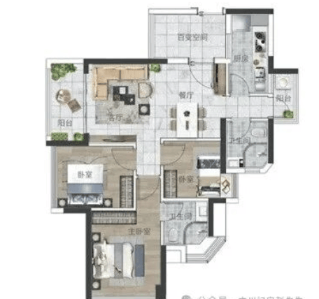 89㎡户型主打舒适改善,三房两卫的配置完美解决了多口之家的 “抢卫生间” 难题,主卧套房设计还能保障主人的私密生活。该户型的空间尺度更为阔绰,部分房源还能实现三面无遮挡的开阔视野,高层单位甚至能远眺白云山,在老城区里享受到难得的景观资源。