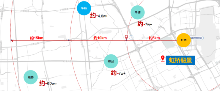 「虹桥融景」位于虹桥主城老牌别墅区-徐泾国际别墅区,领踞国展正席之位。在住宅规划只有约5%的虹桥商务区核心区。项目直线距离二号线徐泾东站仅约1000米,窗外就是国家会展中心。
