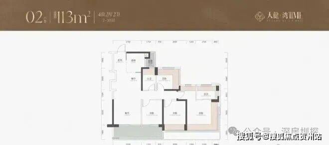 113㎡4房2卫:布局也很类似瑧誉府同位置的的123㎡4房,厨房外带设备平台可做生活阳台,北向的次卧面积更加适宜,还采用了双面飘窗。