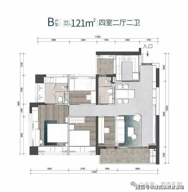 B户型 建筑面积约121㎡/121㎡ 4房2厅2卫