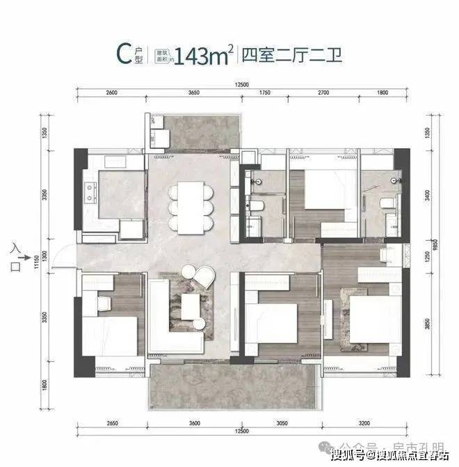 C户型 建筑面积约143㎡ 4房2厅2卫东南 西北通大四房