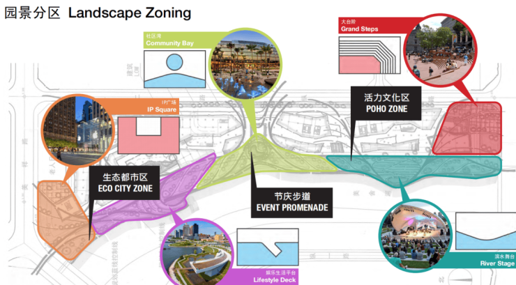 以三大艺术主题景观、活力开放空间,点缀滨水商业景观节点。