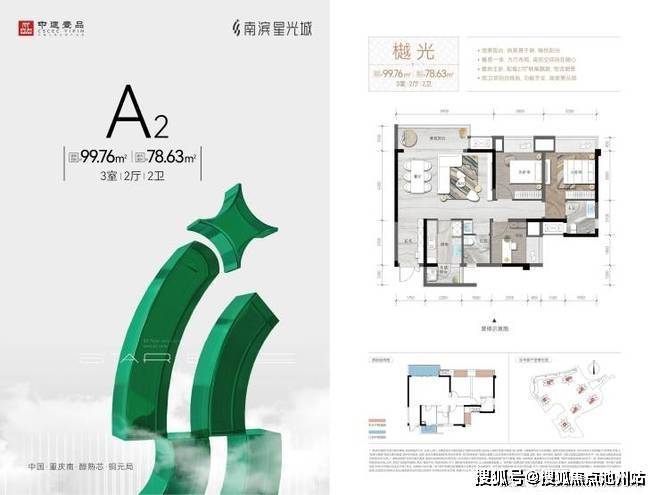 A2户型建面: 99.76㎡ 套内:78.63㎡