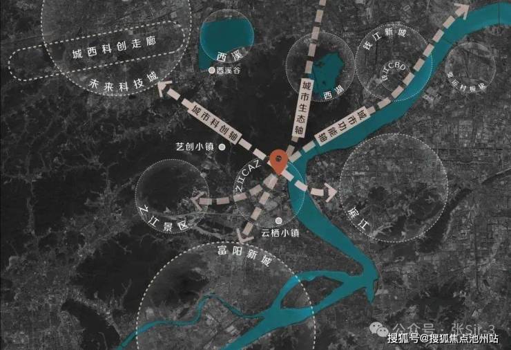 区位图周边辐射三大轴城市生态轴 城市科创轴 城市功能轴