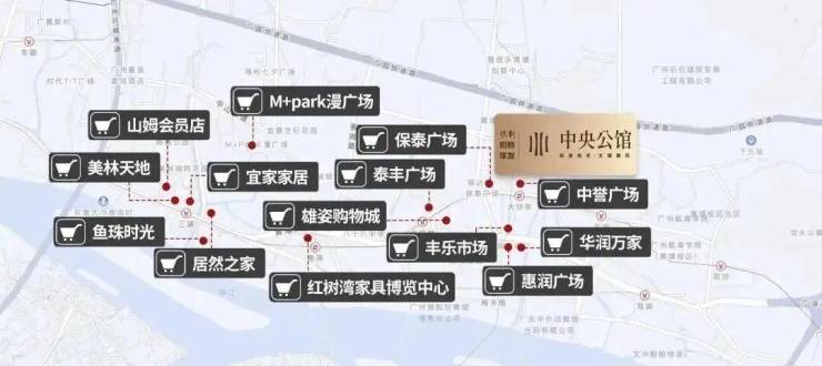 小区内部规划超2000平方米商业,周边有惠润广场、沃尔玛等小型商业,3公里范围内覆盖美林天地、山姆会员店、保利鱼珠时光等大型商业综合体。