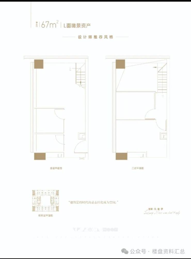 【67m²loft户型双层示意图】