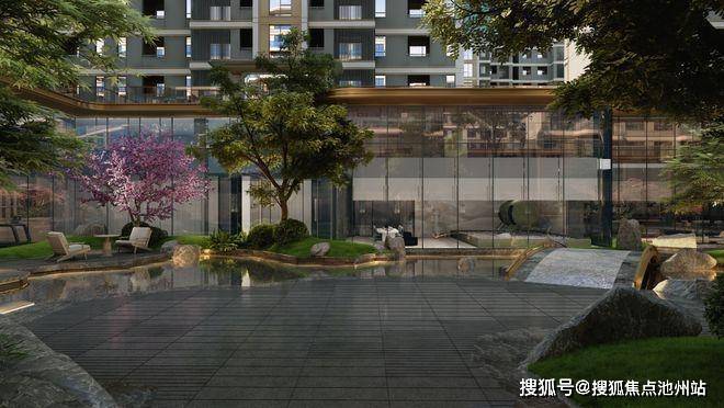 绿城·桂语安澜的花园哲学,是让自然基因渗透至每一处空间肌理。自下而上,下沉式庭院以私密围合演绎入户礼序,山水庭院以水墨笔法勾勒诗境,空中浮岛将开敞阳台与私家花园完美融合,露台则以第二客厅的姿态,承载星空下的家庭剧场。当传统社区因容积率限制而压缩景观纵深时,绿城却以“下沉庭院+地面园境+空中浮岛+屋顶露台”构建多维生态,让花园缦境从平面走向立体,从单一走向复合,形成垂直维度的景观叙事。
