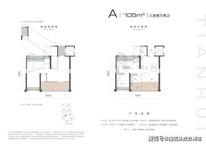 天荟首开的105、128和139㎡三个户型,是首改、中改类进阶家庭的专属定制。