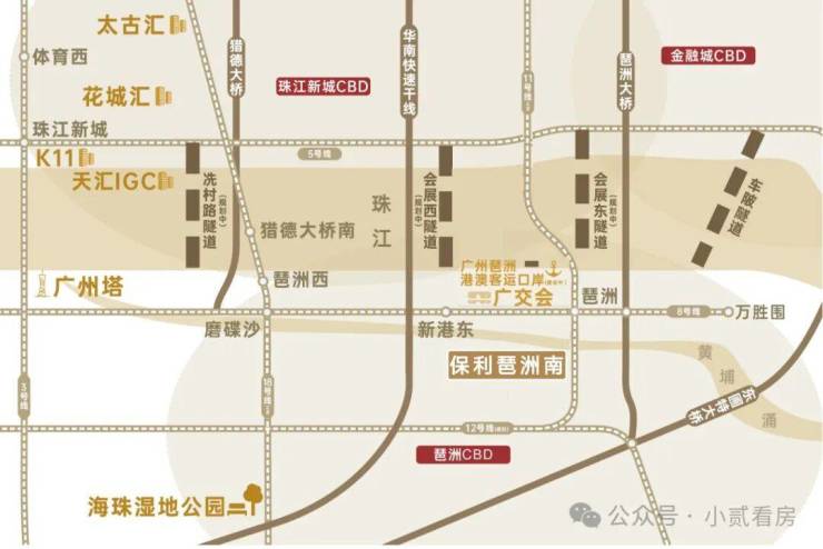 项目距离广州地铁8号线和11号线的琶洲站仅900米,步行即可到达。