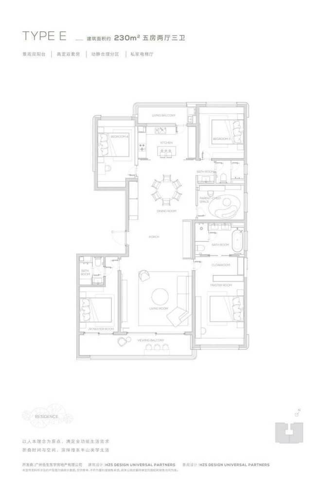 【230㎡户型】观景双阳台-高定双套间-私家电梯厅-双洄游动线