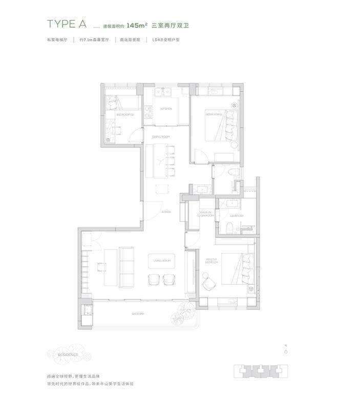 【145㎡户型】独享私家电梯厅-约7.1m²森幕宽厅-LDKB全明户型