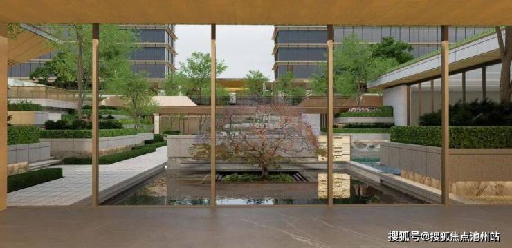 水韵之澜,将秦淮河水演化成大面积水景、旱水等“水”的不同呈现形态,营造出一条贯通全园的“秦淮河,这是设计者对于秦淮水岸生活的现代转译。未来业主沿着风雨连廊归家,一路欣赏沿途潺潺水景,内心的繁杂仿佛也被过滤掉了。