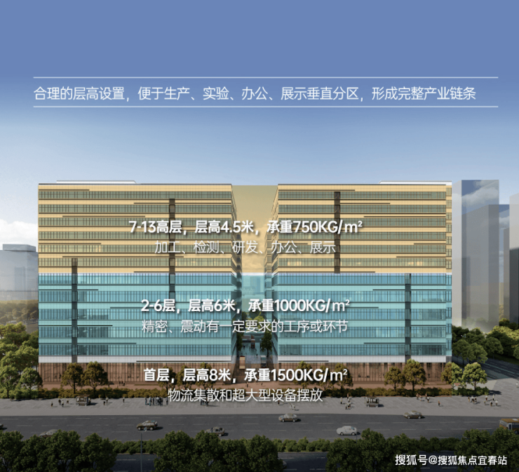 高层高:最高8米层高,8.7m*10.5m柱间距,满足企业多元需求