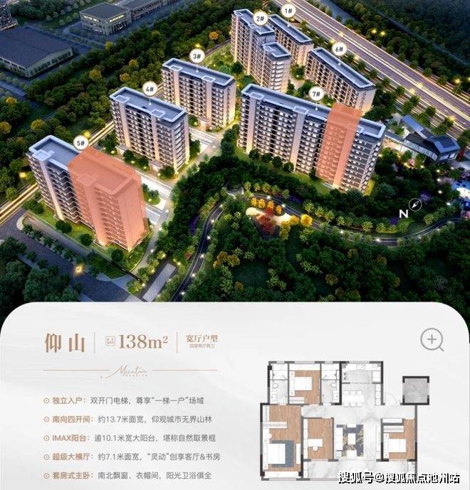 126㎡宽厅户型则有着南向约7.9米宽双阳台,双开门电梯,约4.9米横厅。