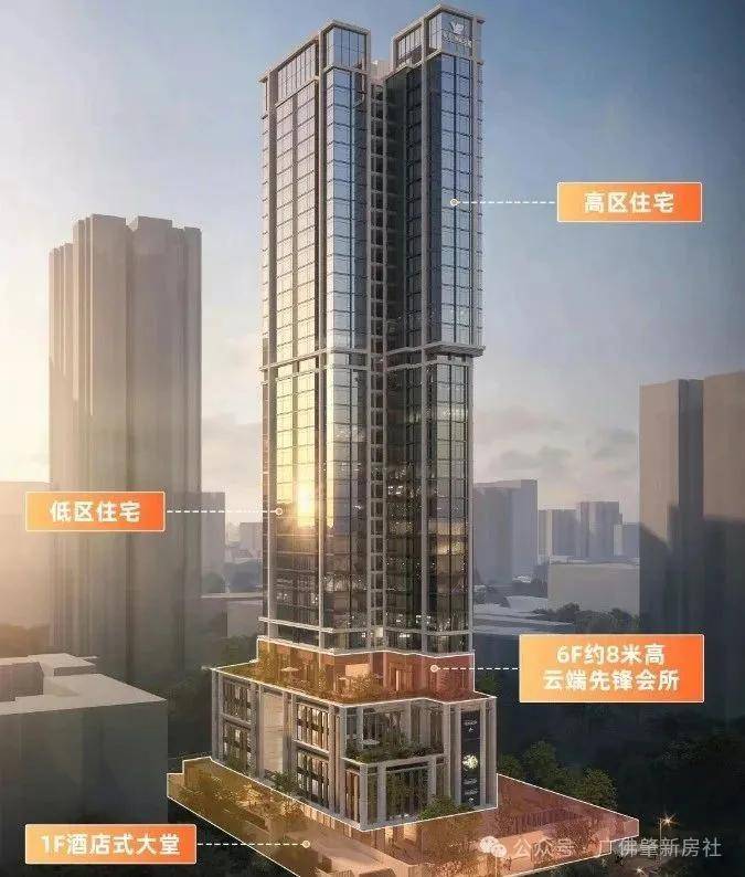 功能分层布局(6 层以下无住宅 1-5 层规划商业及配套设施隔绝噪音粉尘;6 层整层设云端先锋会所涵盖会客厅、健身房、儿童阅读区等社交空间业主可在高空完成休闲健身;6 层户外打造空中花园以岭南园林造景手法通过层叠花木与镜面水景营造 "空中秘境" 体验);