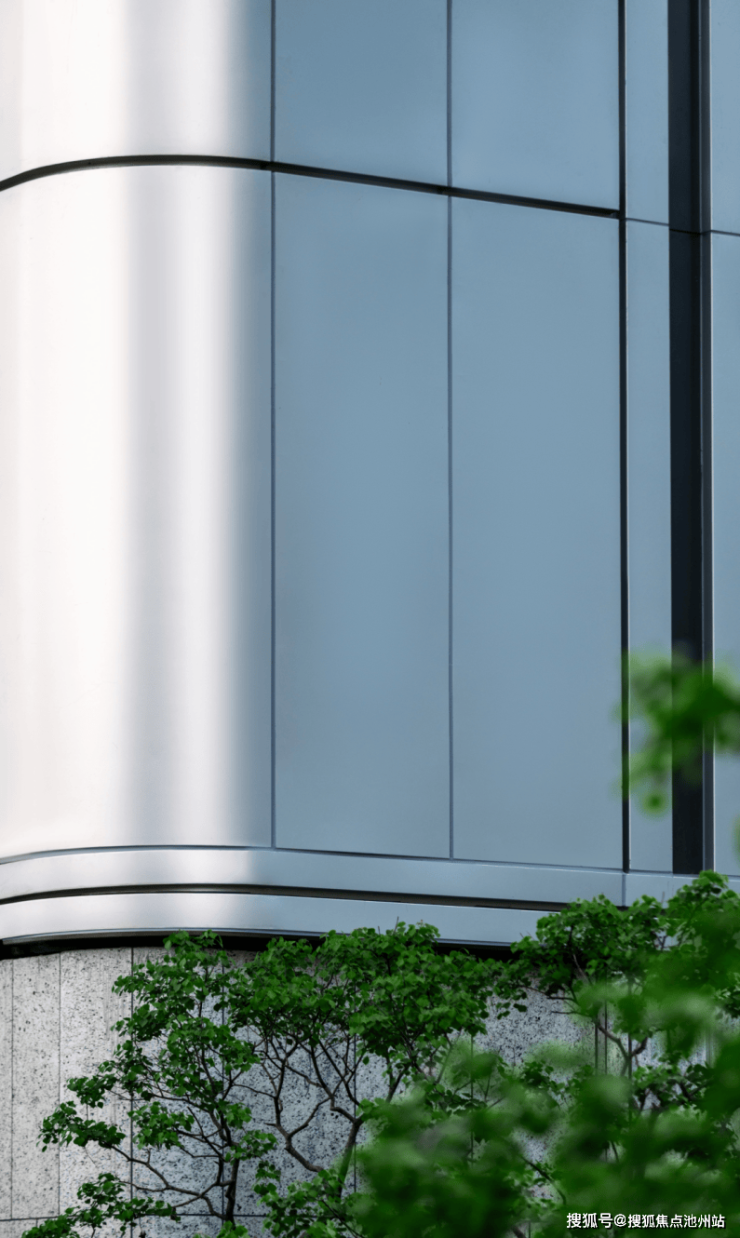洋房建筑立面运用曲面屏结合高级灰玻璃,勾勒出如湖波流转的现代线条。超大玻璃幕墙占比,270°环幕视界,引景入室,南北立面均选用高品质蜂窝铝板,实现四面皆景,历久弥新。