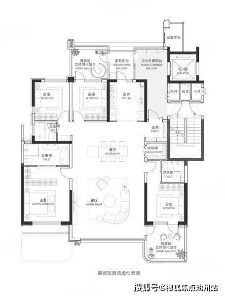 2,客厅没有露台,采光完全不受影响。目前四代宅主流缺陷之一在这个户型被完美解决。