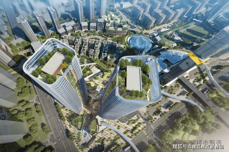 地标:双子星门户地标姿态和形象,绿色、智能化总部办公